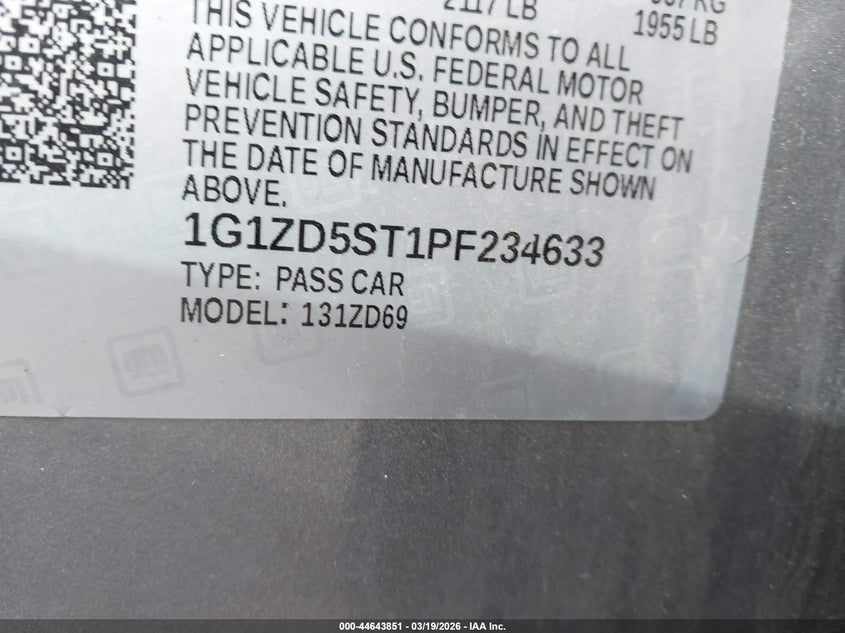 VIN: 1G1ZD5ST1PF234633