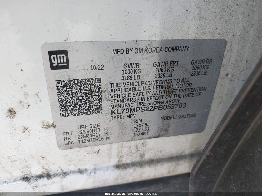 VIN: KL79MPS22PB053703