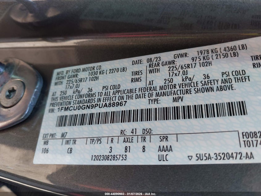 VIN: 1FMCU0GN9PUA88967