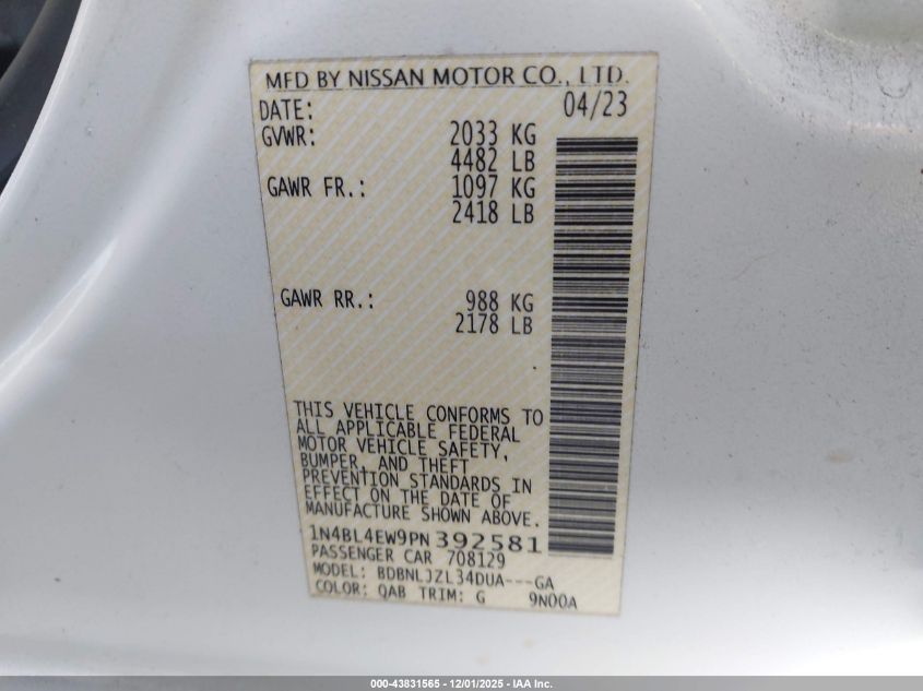 VIN: 1N4BL4EW9PN392581