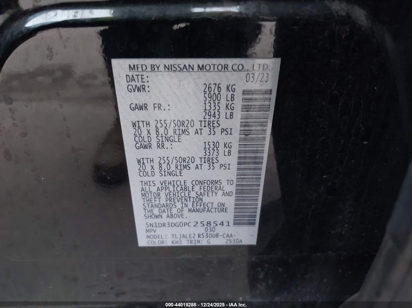 VIN: 5N1DR3DG0PC258541