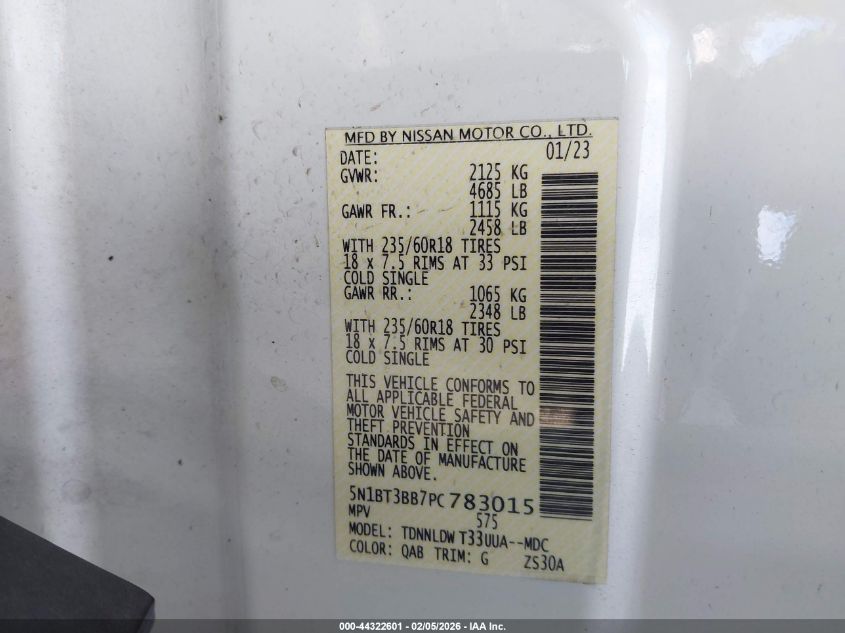 VIN: 5N1BT3BB7PC783015
