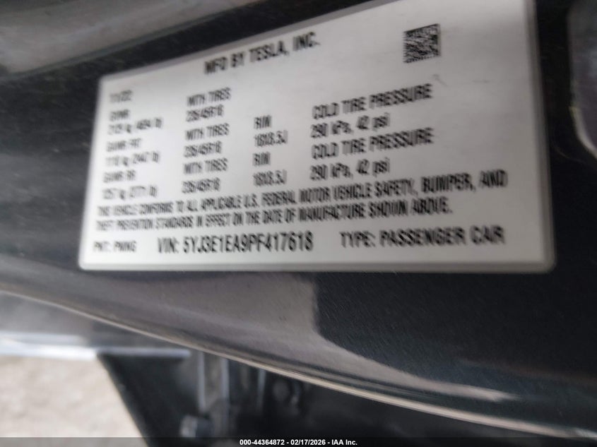 VIN: 5YJ3E1EA9PF417618