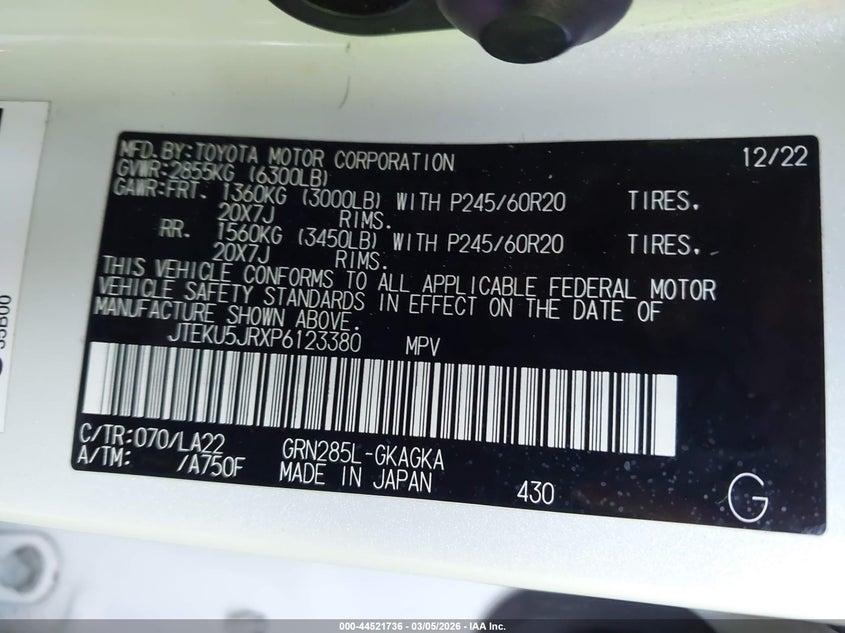 VIN: JTEKU5JRXP6123380