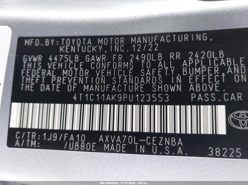 VIN: 4T1C11AK9PU123553
