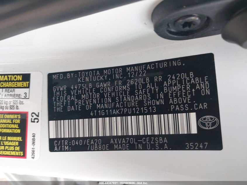 VIN: 4T1G11AK7PU121513