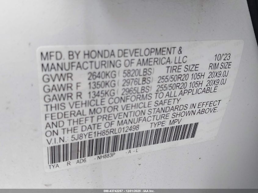 VIN: 5J8YE1H85RL012498