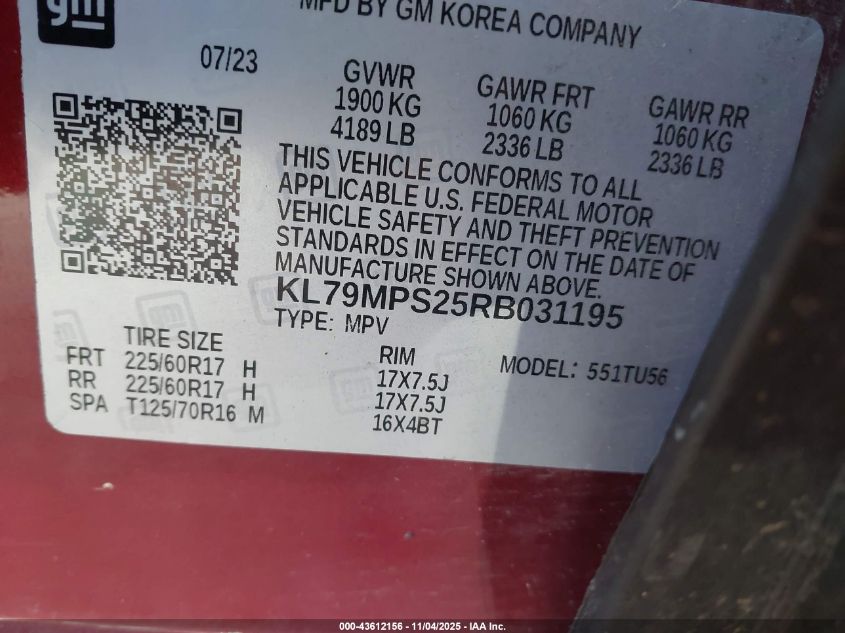 VIN: KL79MPS25RB031195