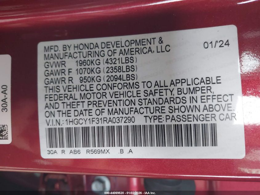 VIN: 1HGCY1F31RA037290