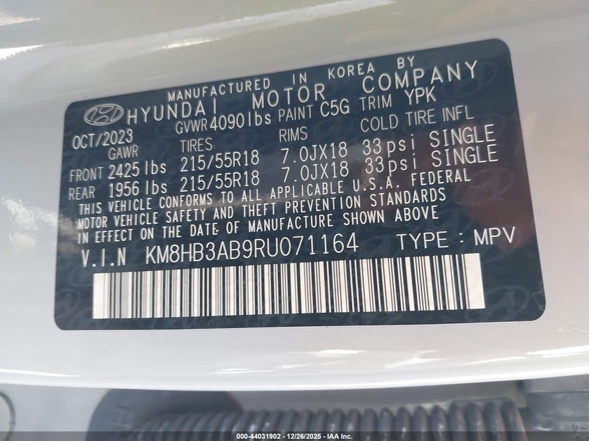 VIN: KM8HB3AB9RU071164