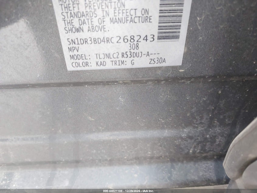 VIN: 5N1DR3BD4RC268243