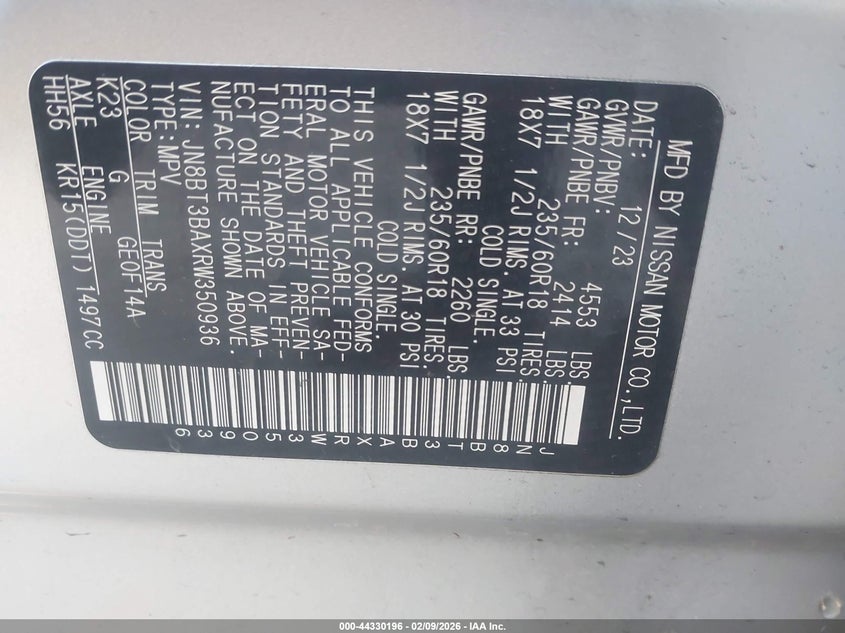 VIN: JN8BT3BAXRW350936