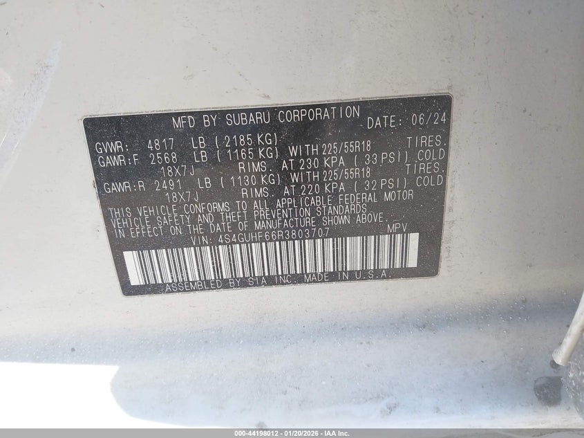 VIN: 4S4GUHF66R3803707