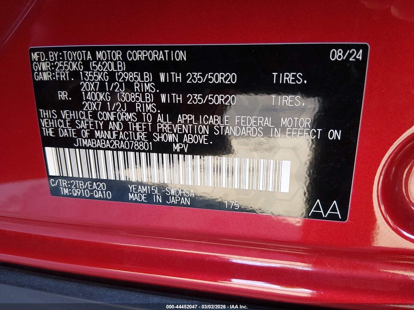 VIN: JTMABABA2RA078801