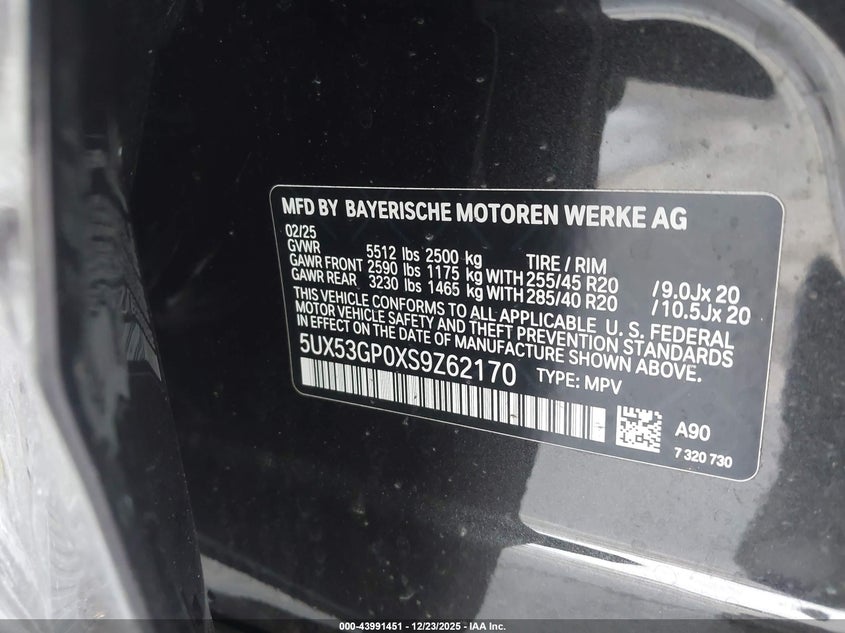VIN: 5UX53GP0XS9Z62170