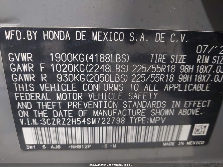 VIN: 3CZRZ2H54SM722798