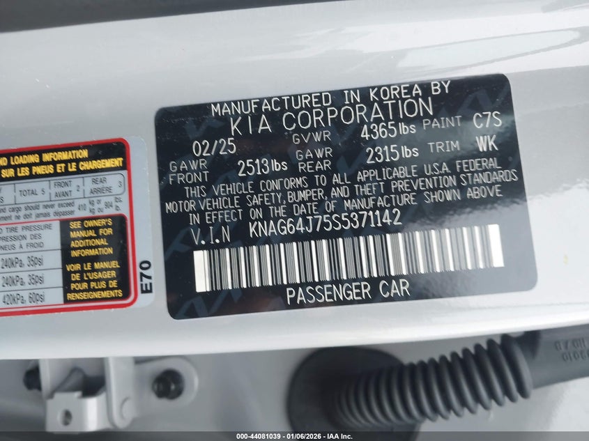 VIN: KNAG64J75S5371142