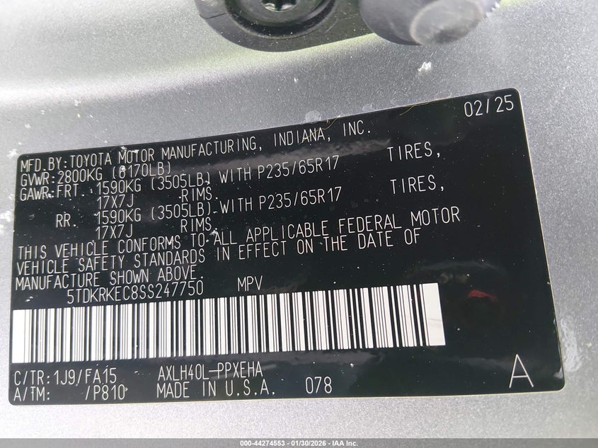 VIN: 5TDKRKEC8SS247750