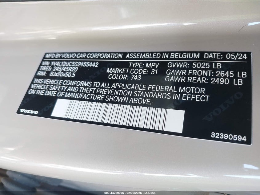 VIN: YV4L12UC5S2455442