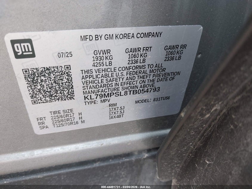 VIN: KL79MPSL8TB054793