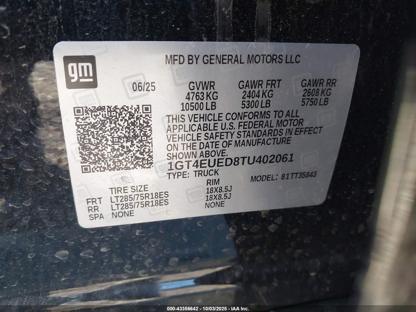 VIN: 1GT4EUED8TU402061