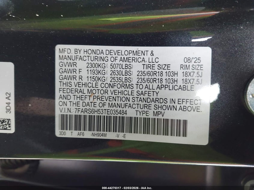 VIN: 7FARS6H53TE035484